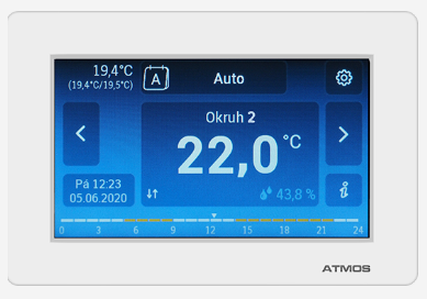 ARU 30 – służy do intuicyjnego sterowania obiegiem grzewczym, informowania o ustawionych parametrach i trybach, do pomiaru temperatury i wilgotności w pomieszczeniu. Za pomocą ekranu dotykowego umożliwia zmianę żądanej temperatury pomieszczenia w funkcji czasu, zmianę trybu pracy za pomocą zaprogramowanych funkcji oraz komunikację ze sterownikiem ACD 03/04. Jednostka ARU30 umożliwia elektroniczne sterowanie optymalizujące ogrzewanie budynku (temperatura wody dla danego obiegu grzewczego). Meblościankę należy ustawić na wysokości ok. 1,2 do 1,5 m w neutralnym miejscu tj. do punktu odniesienia dla wszystkich pomieszczeń (obieg grzewczy). Do umieszczenia wskazane jest wybranie jednej z wewnętrznych przegród najzimniejszego pomieszczenia w ciągu dnia.