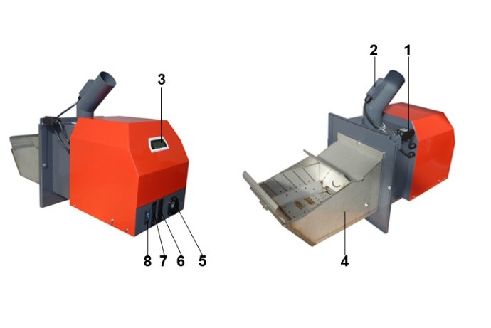 | 4. | komora spalania palnika | 8. | złącze do podłączenia czujnika obrotów wentylatora wyciągowego kotła |