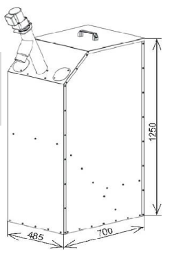 W zbiorniku o pojemności użytkowej 240 l zmieści się 156 kg pelet, tj. ok. 700 kWh. (10 worków / 15 kg)