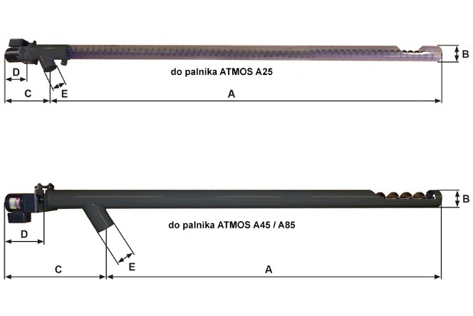 Podajniki bezwałowe DA w długościach od 1,5 m do 4 m przeznaczone są do palnika ATMOS A25.